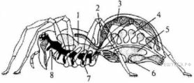 На схеме строения паука-крестовика цифрами 2 и 3 обозначены структурные элементы системы: